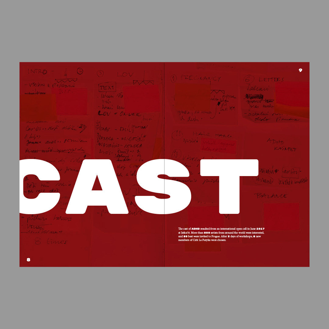 Key visual and program brochure for the contemporary circus show ADHD by Cirk La Putyka (2018)