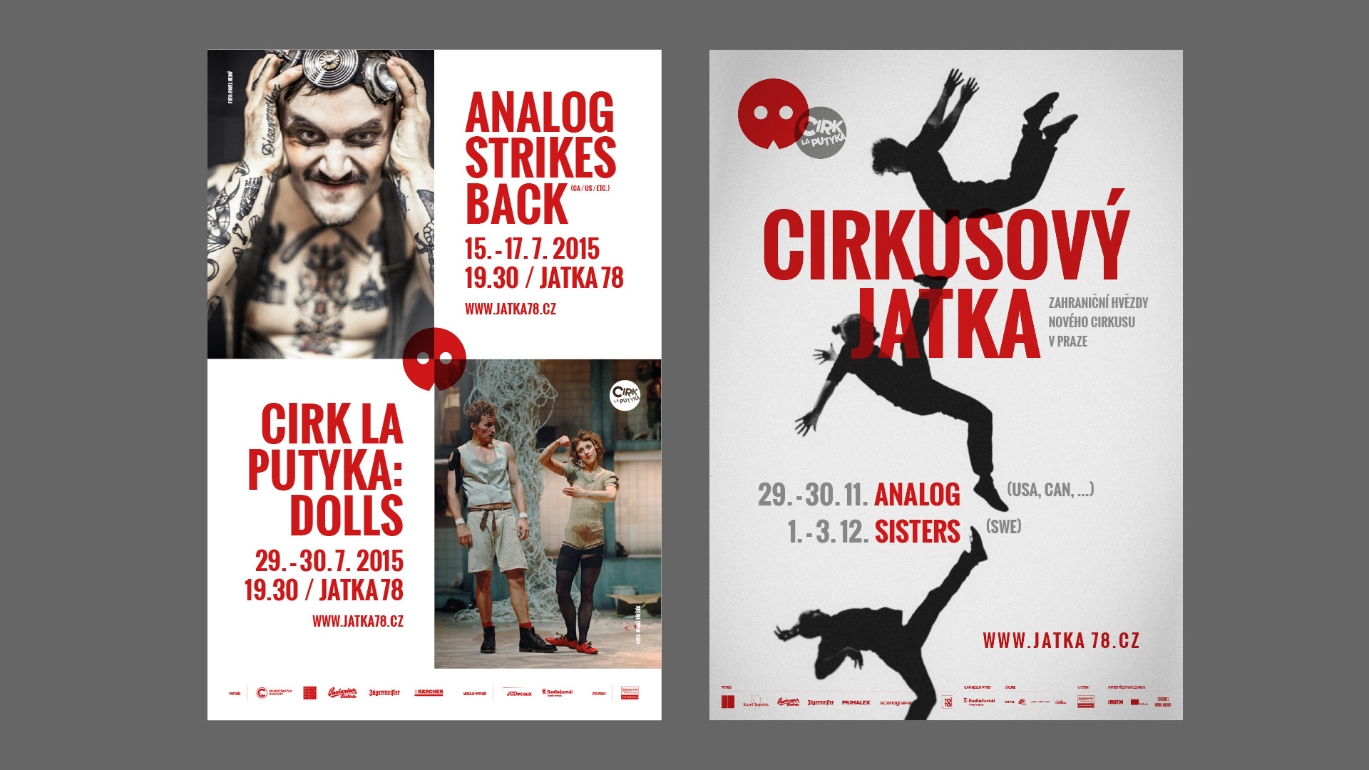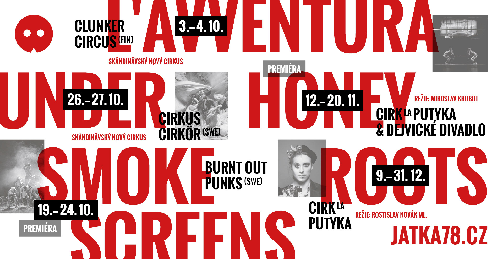 Visual identity, web design, and visual communication for the contemporary circus–theatre venue in Prague. (2014–2018)