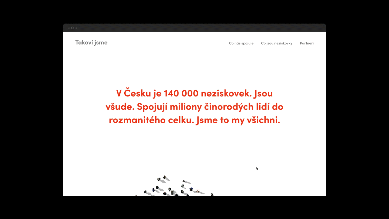Visual identity, web design, the idea for the video spot, and animation for the campaign supporting the reputation of the Czech non-governmental sector. (2021)
